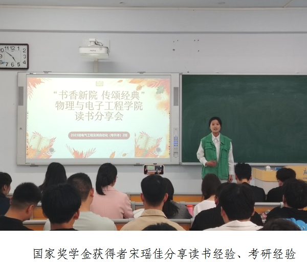 分享会上还邀请了国家奖学金获得者、“河南省文明学生”、考研上岸郑州大学的学生宋瑶佳等四名考研上岸学生分享读书经验、考研经验。
