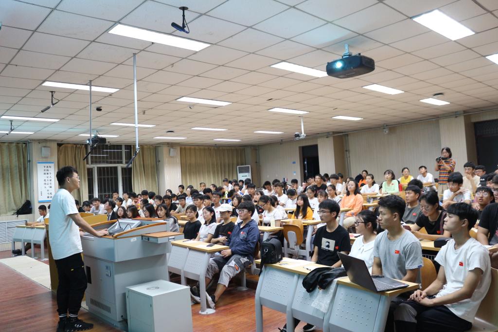 首先,由刘天赐同学致开场词并宣读比赛细则。随后,比赛在全场同学的国歌声中拉开序幕。在各位参赛选手的解说中,一个个承载着祖国历史与梦想的视频呈现在观众面前。视频中热血沸腾的画面感染着台下的每一位同学,激发着同学们的爱国热情。比赛结束后,在场的全体人员一起合唱歌曲《我和我的祖国》。最后,经过各位评委的投票评比决定郝志浩、牛晓丹、李鑫冉等六名同学获奖,到此活动圆满结束。