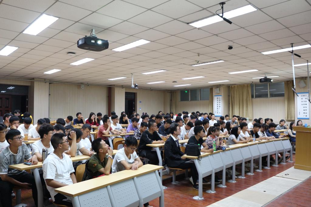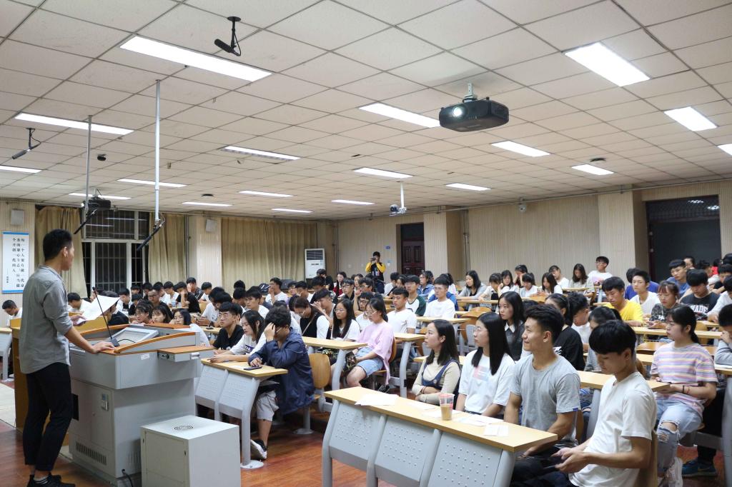 首先,由刘天赐同学致开场词并宣读完规则。随后,比赛正式拉开帷幕。参赛选手们在舞台上用最真挚的语言表达了对新中国的赞叹,用一句句振奋人心的话语和慷慨激昂的热情使新中国70周年所创造的成就历历在目。台下的同学们更是听的热血沸腾,心中抑制不住的激动。演讲结束后原喜亮同学做了精彩的点评。最后经评委投票评分决定赵炎龙、陈少杰、郑召召等六名同学获奖。本次活动圆满结束。