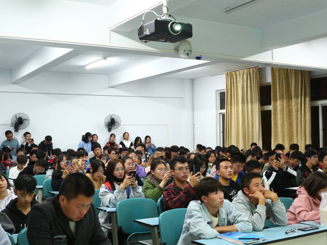 首先,主席团成员孙一帆同学和朱子秋同学分别在413、414对学生会的主要职责进行简单的介绍。接着,各个部门的部长依次上台进行演讲,对自己部门的主要职责进行简单的介绍,表示希望有责任心的同学们积极报名参加。在演讲的过程中,他们语气时而严肃时而幽默,台下的同学们都聚精会神,甚至拿出手机拍摄重点的信息。最后,各班级有序离开,此次活动圆满结束。