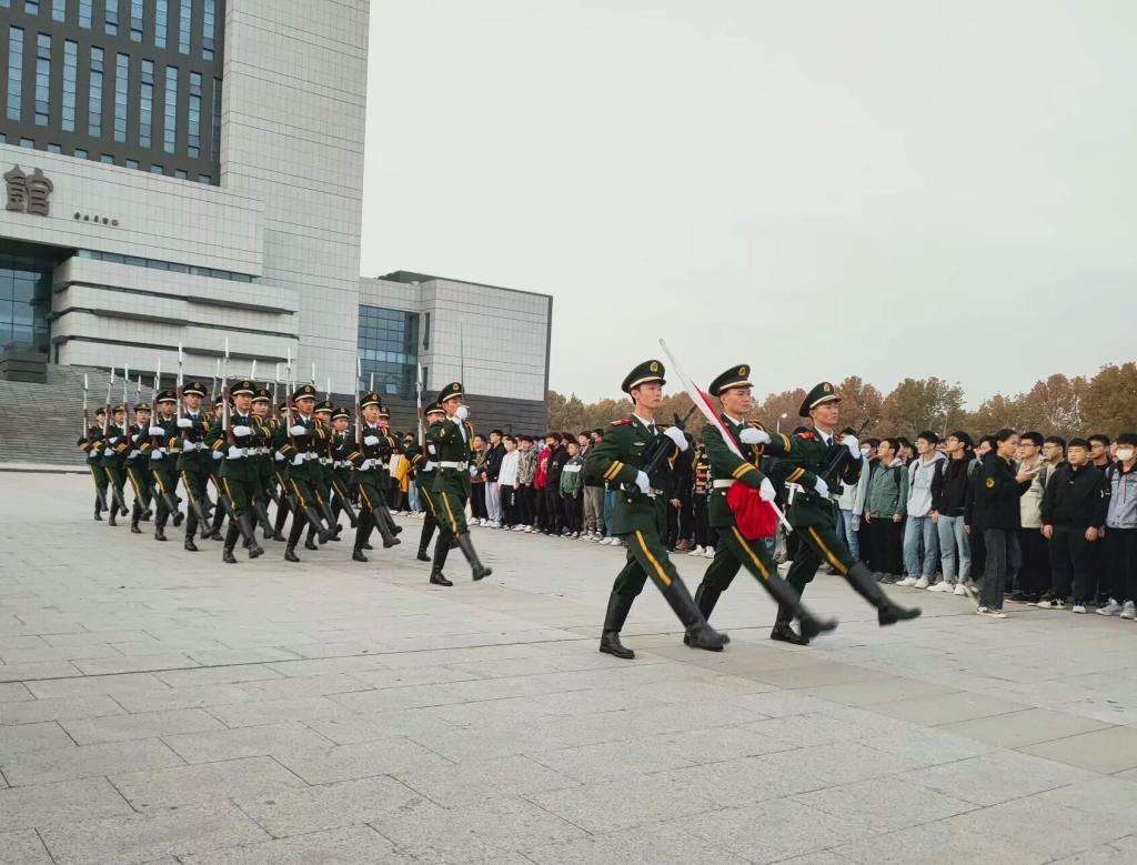 为了培养学生爱国敬党精神、弘扬红色教育。太阳集团网站8722于11月9日在图书馆前国旗广场参加了第九周例行升旗仪式。此次升旗仪式由余凌雪同学担任主持人,学生代表梁子龙同学和国旗护卫队代表杜川同学担任演讲人,参加此次升旗仪式的有国旗护卫队全体队员和太阳集团网站8722全体学生。