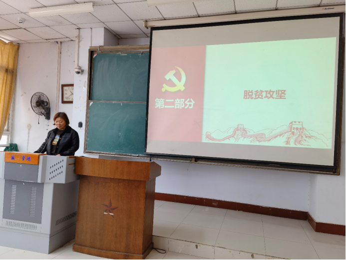 会上,张晓蕊书记首先带领大家一起学习了中国共产党建党史,并强调,广大青年学生应学史明理、学史增信、学史崇德、学史力行,要清晰明确自己肩上的历史责任,切实把个人理想与中华民族伟大复兴的中国梦紧密相连。在带领大家一起学习习近平总书记在全国脱贫攻坚总结表彰大会上的发言时,张书记叮嘱大家要珍惜现在的美好生活,坚定理想信念,将自身学到的科学文化知识转化到祖国的生产建设中。张书记还为大家讲解了戍边英雄肖思源的英烈、抗疫英雄的典型事迹,并告诫大家要以英雄为榜样,培养自身不怕困难,坚忍不拔,乐于奉献的优秀品格。