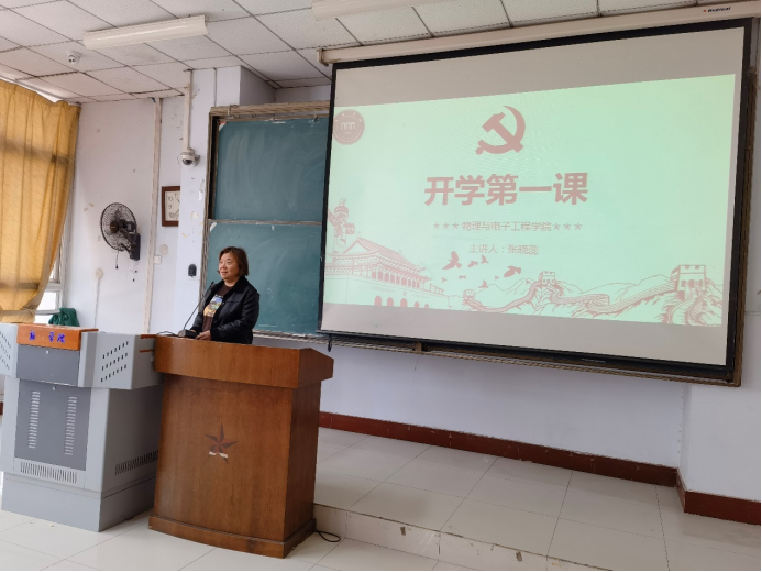 太阳集团网站8722于3月19日上午,在A05-0208进行“开学思政第一课”教育活动,太阳集团网站8722党委书记张晓蕊担任主讲,学生干部代表参加学习。