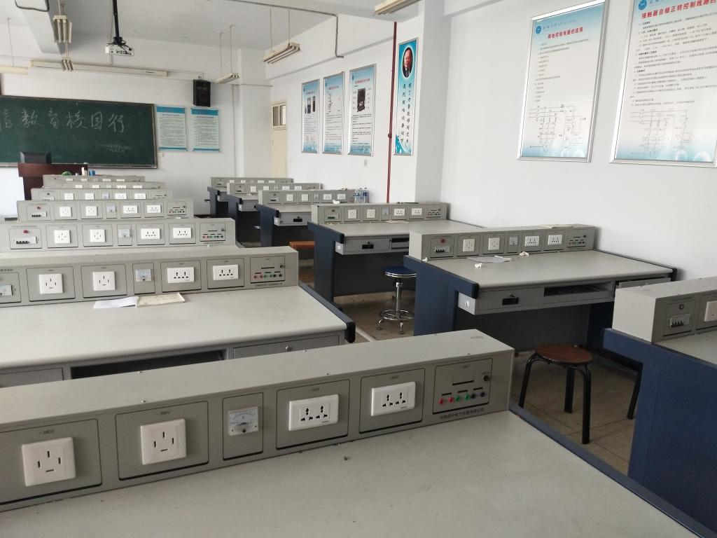 职业技能实训实验室是针对电工职业技术教育的综合实验室,主要用于电工技术的教学和相关实验,以及电工职业技能等级考试等。主要仪器设备有电工技能实验装置、三相电机、交流电压表、交流电流表、万用表等。可完成实验项目有万用表测电阻的方法,熔断器的识别与检测,交流接触器的识别与检测,接触器自锁正转控制线路的安装,按钮、接触器双重联锁的正反转控制线路,Y-Δ降压启动控制线路,两地控制电路的链接,电气原理图的绘制等。
