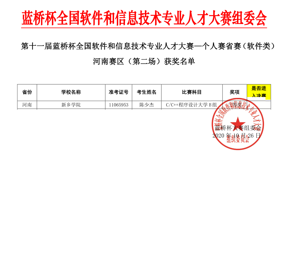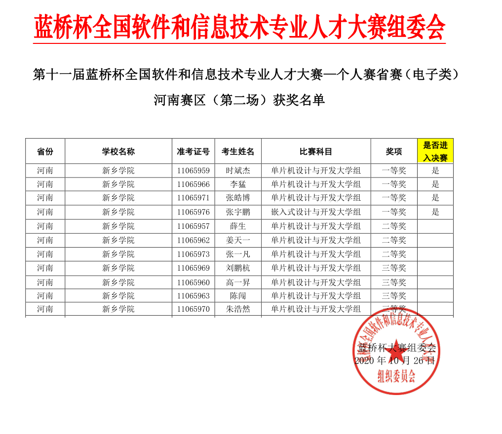 近日,从第十一届“蓝桥杯”全国软件和信息技术专业人才大赛组委会获悉,我校太阳集团网站8722学生在第十一届“蓝桥杯”全国软件和信息技术专业人才大赛河南赛区共获得省级一等奖四项、二等奖三项、三等奖五项。获得一等奖的四名学生将参加11月份的全国总决赛。