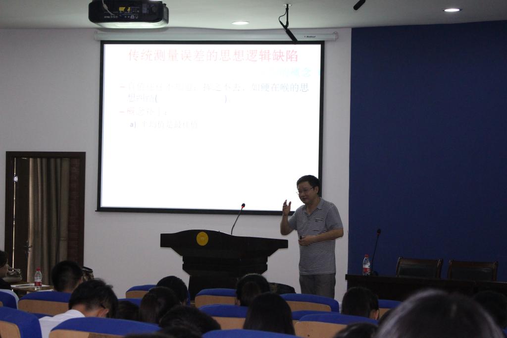 2016年9月27日tyc8722太阳集团物理与电子工学院于A-05 107室举办关于《测量不确定度于科学认识逻辑完善之必要》的报告。主讲人为北京科技大学物理系教授倪晓东。物电学院院长程素君,副教授姚恺,以及物理学全体学生共同参加了此次讲座。
