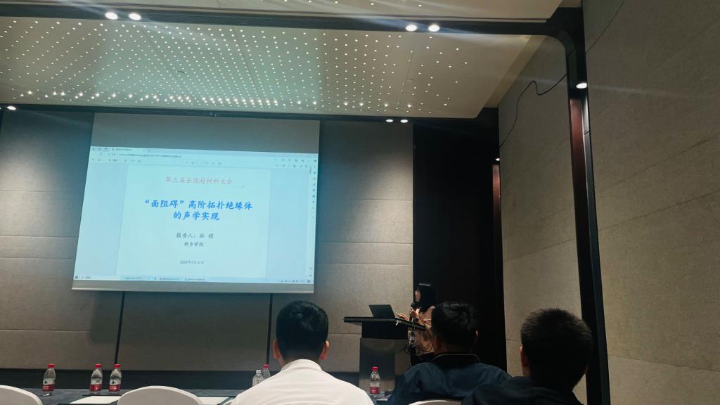2024年5月9日-12日在浙江省乌镇举办了第三届全国超材料大会,我院杜娟博士报名参加本次学术会议。杜娟博士在拓扑声学超材料分会场作了口头报告,报告题目为《面阻碍高阶拓扑绝缘体的声学实现》。报告围绕面阻碍高阶拓扑绝缘体的研究背景、理论构建面阻碍高阶拓扑绝缘体及实验捕捉面阻碍拓扑特性等三方面展开介绍和讨论,引起了参会专家学者广泛的兴趣与探讨交流。