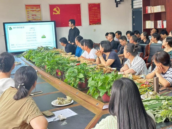 活动伊始,太阳集团网站8722党委书记张晓蕊为老师们送上了节日祝福。活动分两个环节,分别是制作端午花束;别开生面的小型茶话会。现场气氛热烈,热闹非凡。在花束制作环节,大家在桌前围成一圈,一棵棵艾草、一串串五彩线、一个个香囊和平安葫芦在大家的一双双灵巧的手中,变成了端午特有的花束,散发着特有的清香,提神醒脑,在炎炎夏日送来一阵清风和正气。将清廉文化融入端午习俗,弘扬廉洁文化,传承清廉家风,引领学院新风尚。随后的茶话会,大家在品尝到各种粽香的同时,还开展了诵端午古诗、猜端午谚语、抢答端午知识竞赛三个小单元。上台朗诵表演的老师气宇轩昂,字正腔圆,猜端午谚语诙谐幽默,妙趣横生;抢答端午知识竞赛大家恐后,答对后喜笑颜开,大家度过了一个愉快的节日。