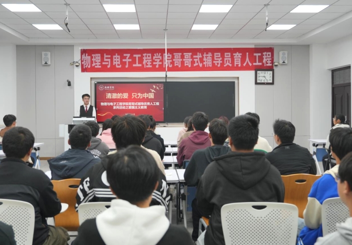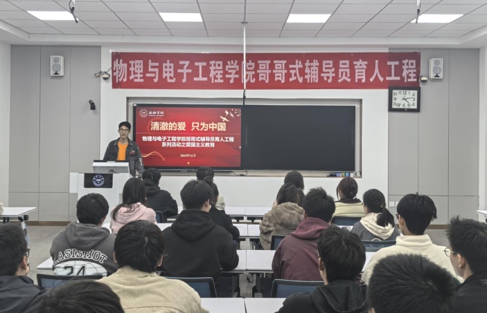 为深入学习贯彻党的二十届三中全会精神,弘扬爱国主义精神、增强民族自豪感和凝聚力,培养具有深厚爱国情怀、坚定理想信念的青年大学生。近日,太阳集团网站8722于A05号教学楼303教室分班级开展“清澈的爱,只为中国”爱国主义教育主题活动,2024级物理学、电子信息类专业学生100余人参加,活动由辅导员马广彬主讲。