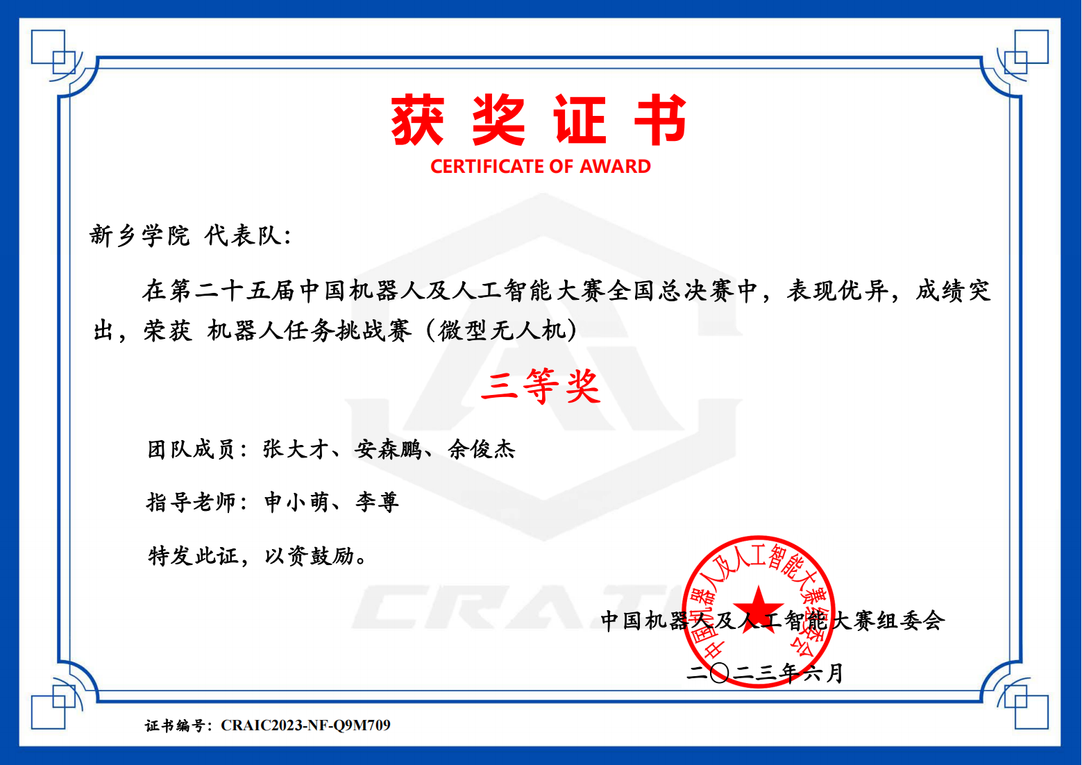 我院学子在第二十五届中国机器人及人工智能大赛喜获三等奖
